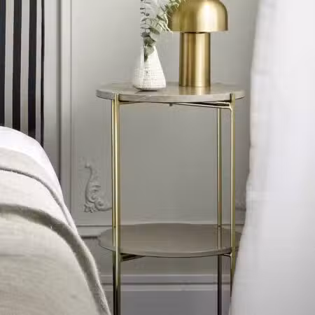 Sellette ronde en marbre, verre et métal – FRYD CARAMEL
